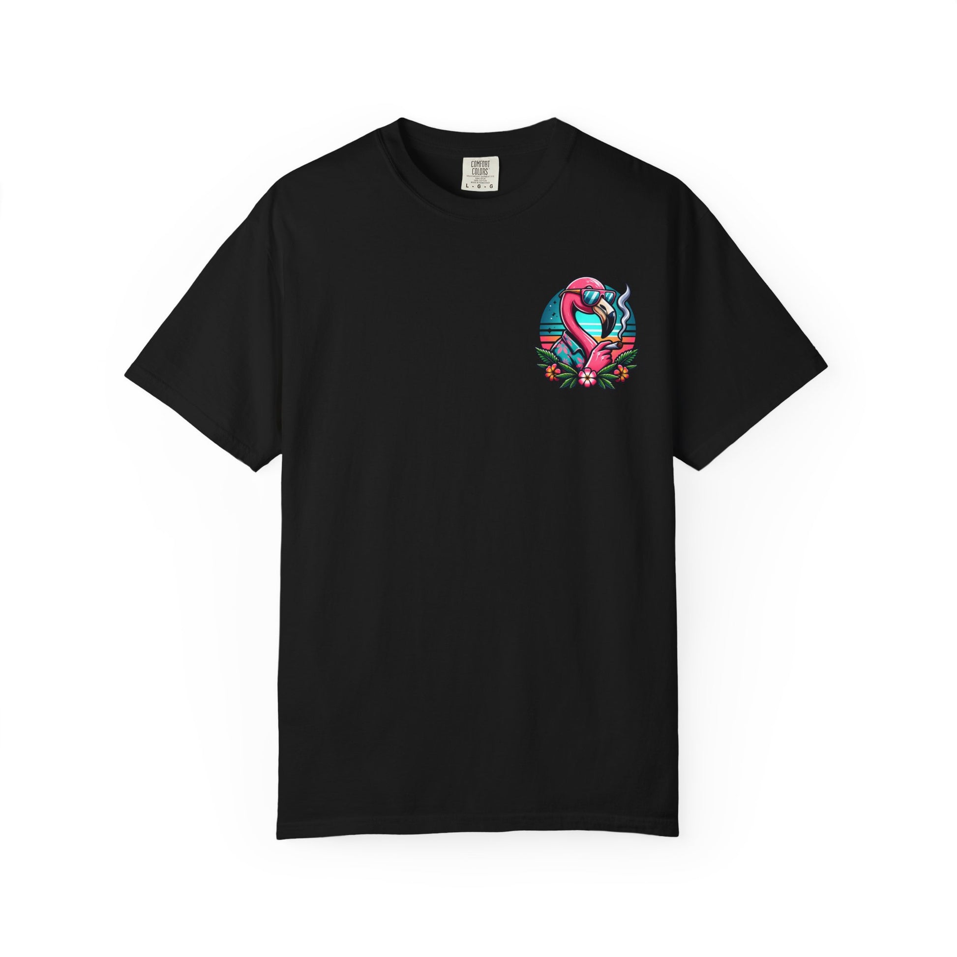 Features: • Unisex garment-dyed tee with a vintage, lived-in feel • 100% ring-spun cotton for softness and durability • Classic fit with relaxed shoulders • Large back graphic: “It’s 420 Somewhere” flamingo design • Small matching front detail • Made to order