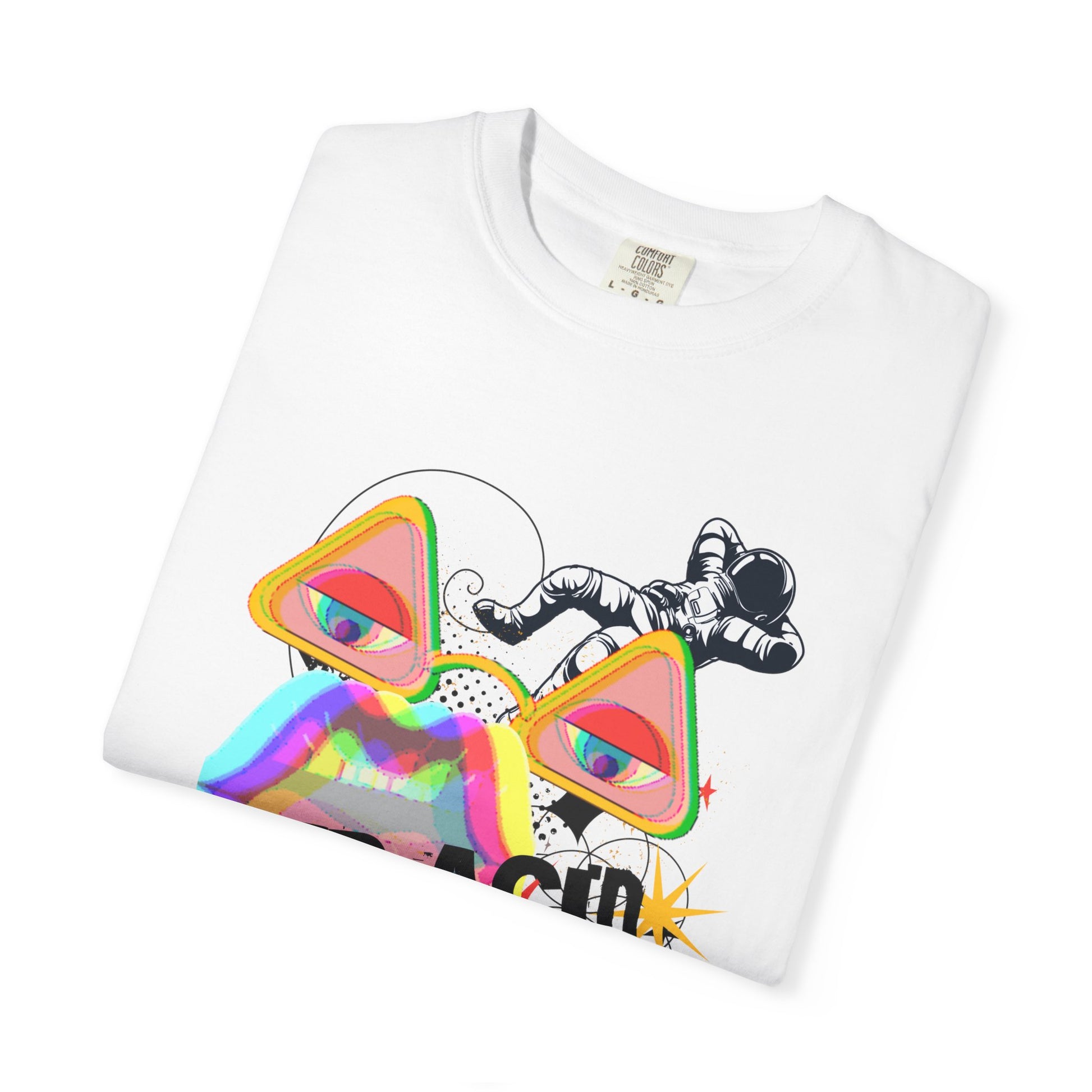 Features: • Unisex garment-dyed tee with a vintage, lived-in feel • 100% ring-spun cotton for softness and durability • Classic fit with relaxed shoulders • Printed front graphic: “Drop Acid Not Bombs” psychedelic design • Available in our classic white tee • Made to order
