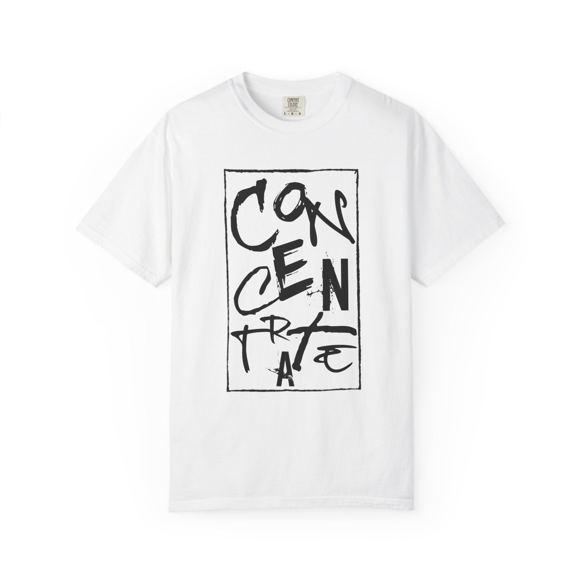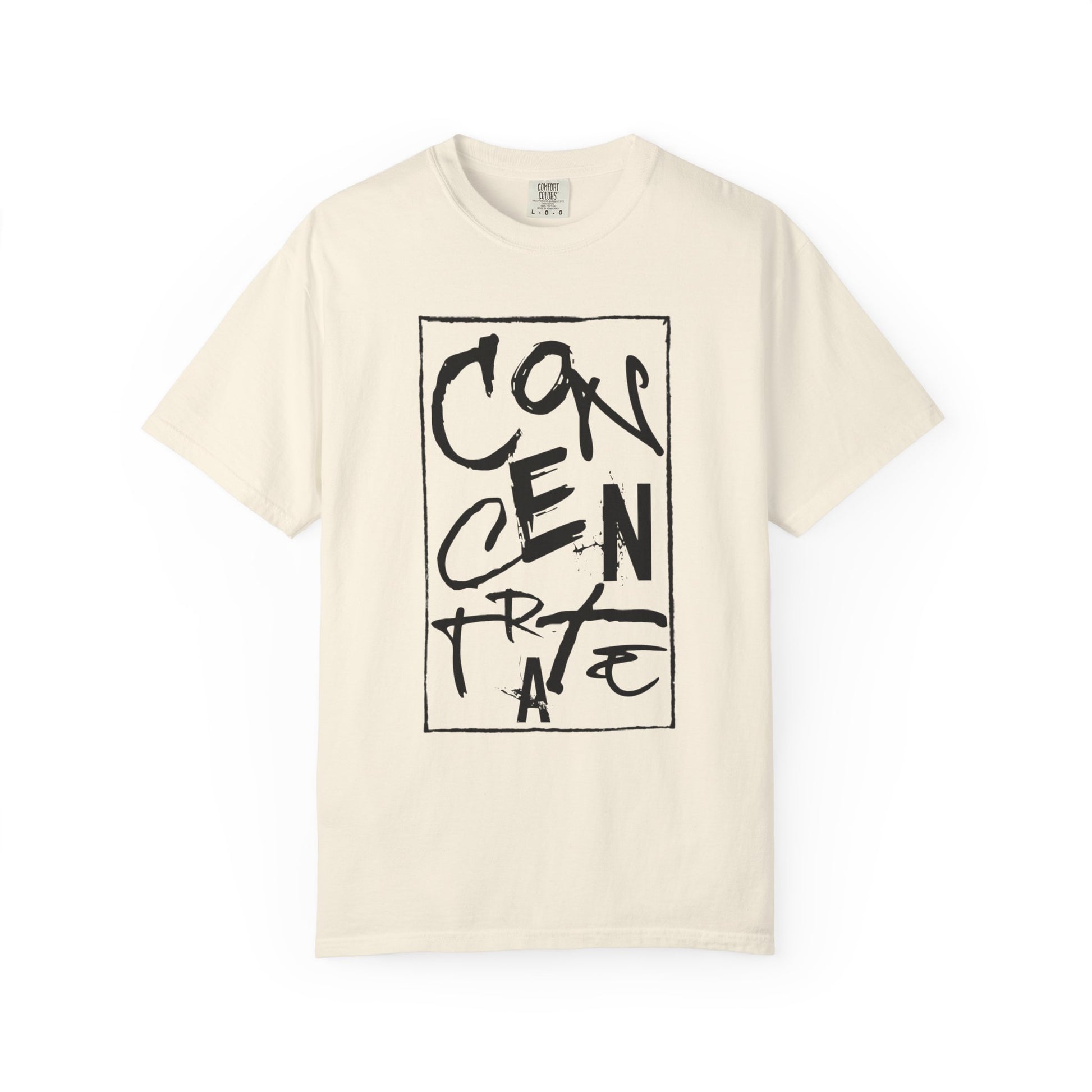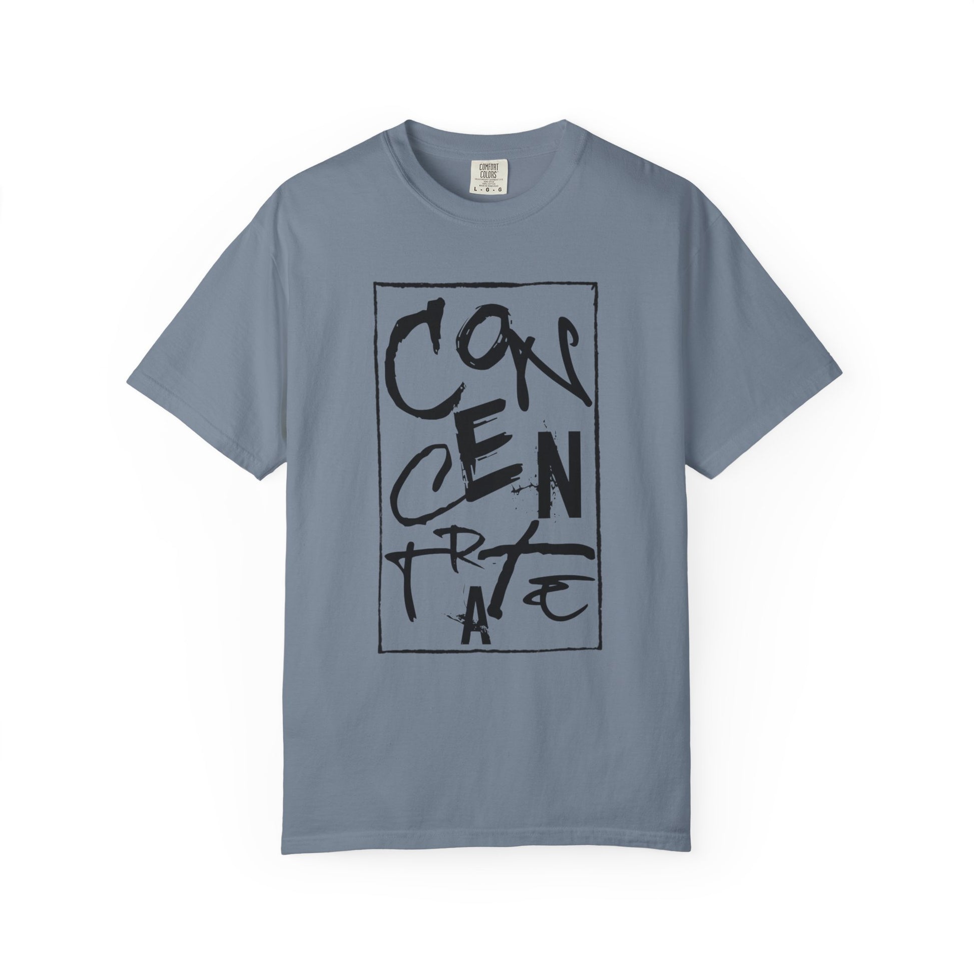 Features: • Unisex garment-dyed tee with a vintage, lived-in feel • 100% ring-spun cotton for softness and durability • Classic fit with relaxed shoulders • Printed front graphic: bold graffiti-style “Concentrate” lettering • Available in multiple colors • Made to order