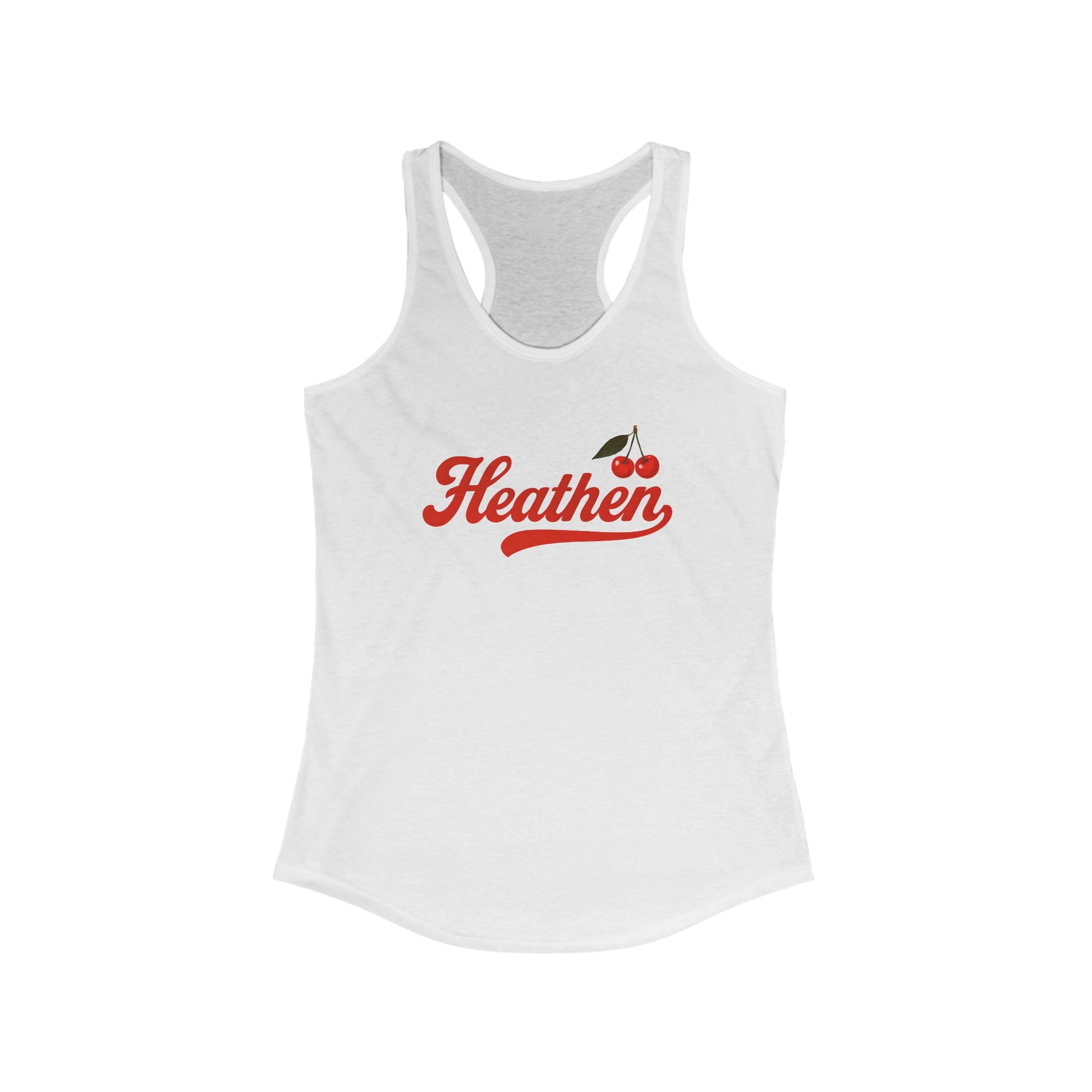 Features: • Women’s Ideal Racerback Tank • Lightweight cotton-poly blend • Flattering, true-to-size fit • Printed “Heathen” cherry design • Color: White • Made to order