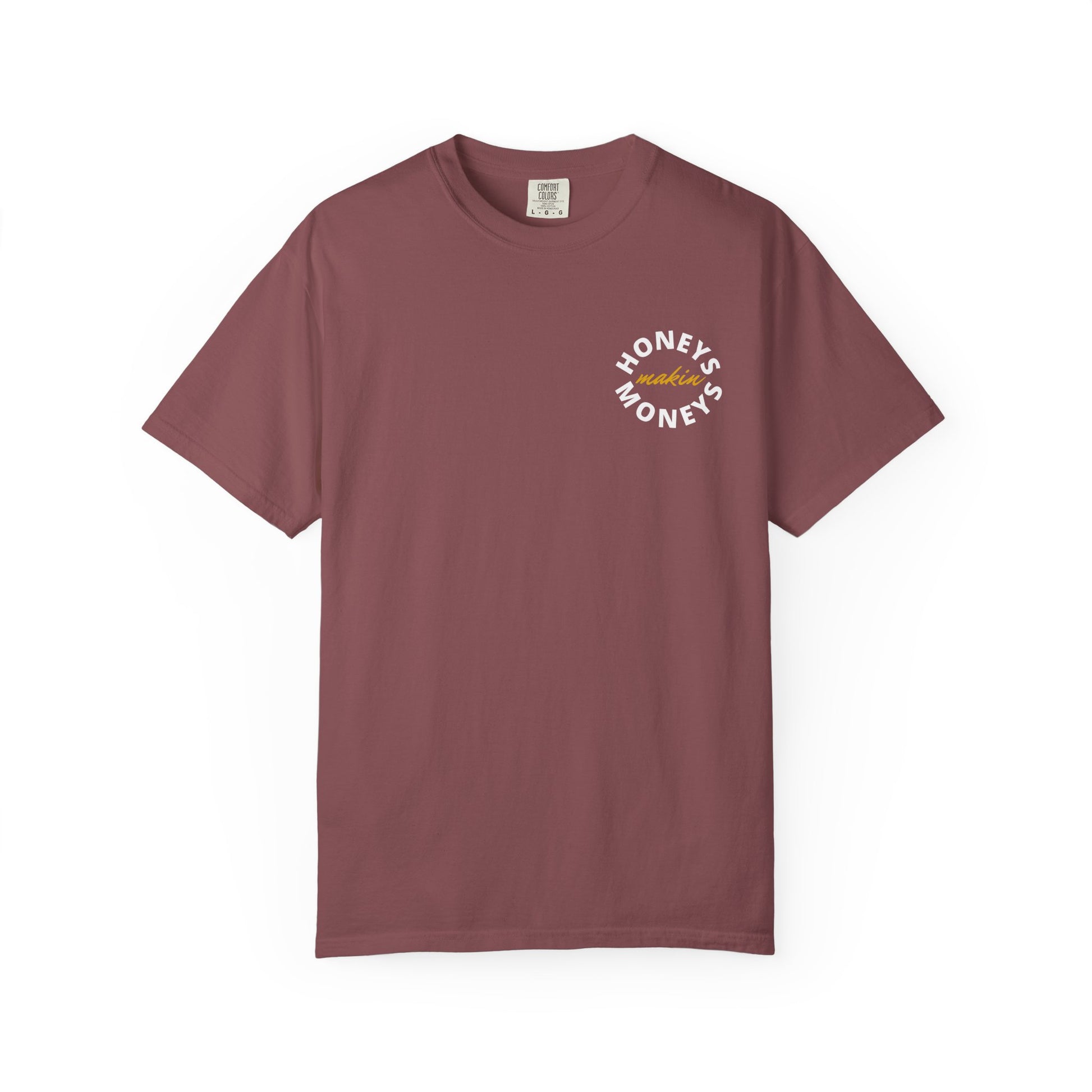 Features: • Unisex garment-dyed tee with a vintage, lived-in feel • 100% ring-spun cotton for softness and durability • Classic fit with relaxed shoulders • Large back graphic: “Honey’s Makin’ Moneys” 24/7 cat design • Small matching front detail • Made to order