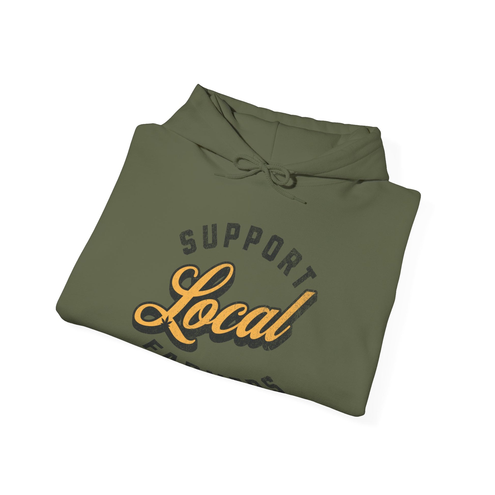Features: • Midweight fleece — soft inside, structured outside • Classic hoodie fit with a kangaroo pocket • Unisex sizing — true to size; size up for that oversized feel • Ribbed cuffs & waistband that keep their shape • Printed front graphic: “Support Local Farmers” retro design • Made to order