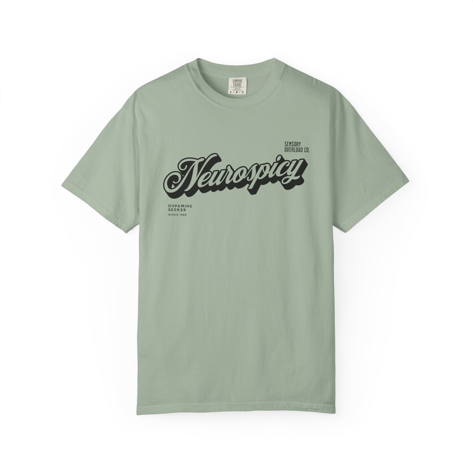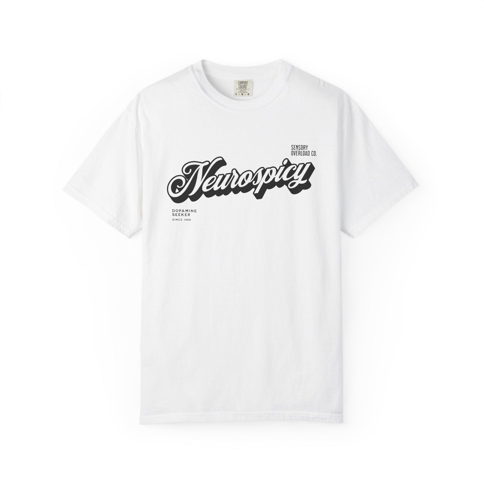 Features: • Unisex garment-dyed tee with a vintage, lived-in feel • 100% ring-spun cotton for softness and durability • Classic fit with relaxed shoulders • Printed front graphic: “Neurospicy” • Available in multiple colors • Made to order